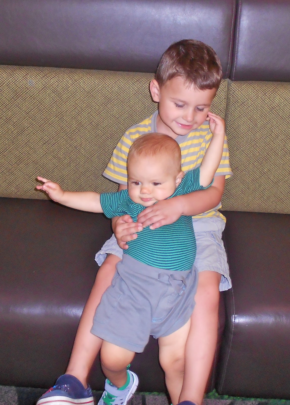 I guess Kason thought Max looked tough enough to give him a piggy back ride! Max looks like a GIANT in this picture with pee wee Kason ha ha ha